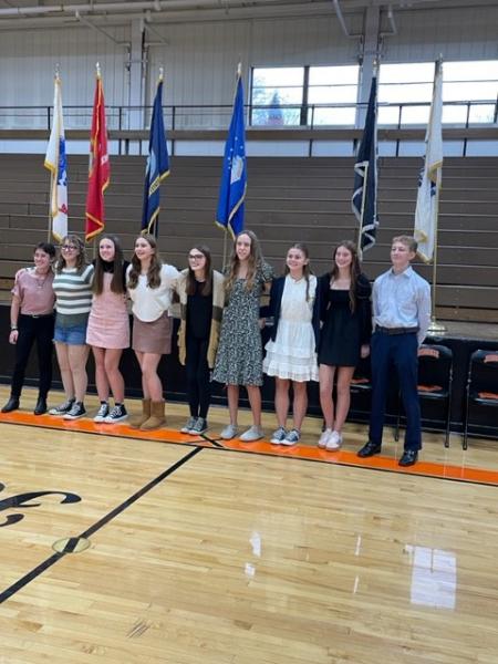Each year with the help of Jonesville Community Schools History Department we ask the class to write a speech entitled "What Veterans Day Means To Me. This year 52 speeches were written and by process of elimitation narrowed down to the top ten by the teacher staff. The Legion then narrows down to the top three of which have the opportunity to read their speeches. This year the speech writers in the top ten were Colton Masta, Sarah Sheffer, Julia Mandrelle, Harper James, Megan Lee, Kira Van Kampen, Silvia Blackman Branna Miller, Colin Fucilem & Keria Knight.